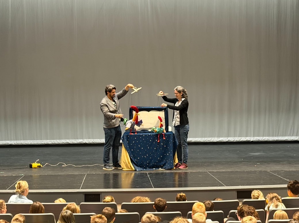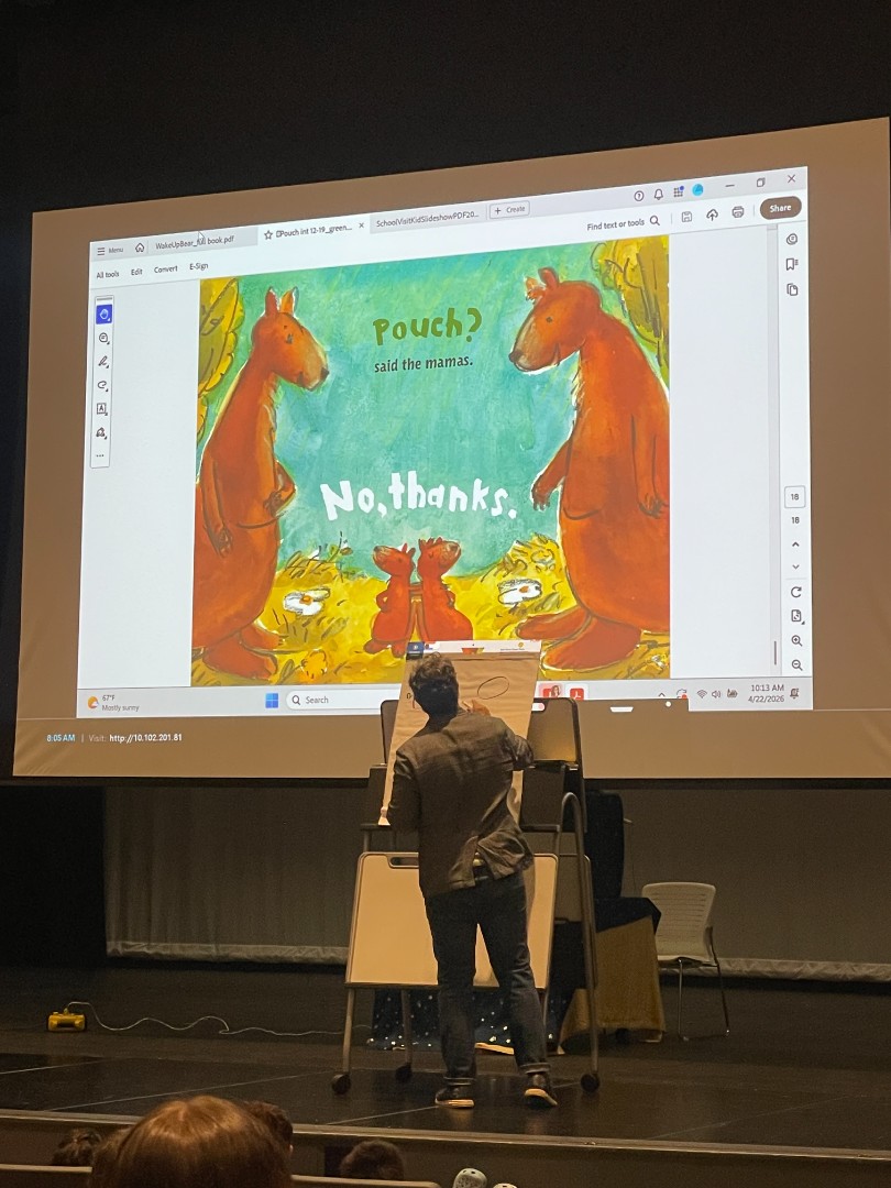 Meanwhile, primary and intermediate students were delighted by a visit from author and illustrator David Ezra Stein. He captivated young audiences with an engaging puppet show and gave students a behind-the-scenes look at how he brings his stories to life through illustration. His interactive presentation made reading and creativity come alive in a fun and memorable way.