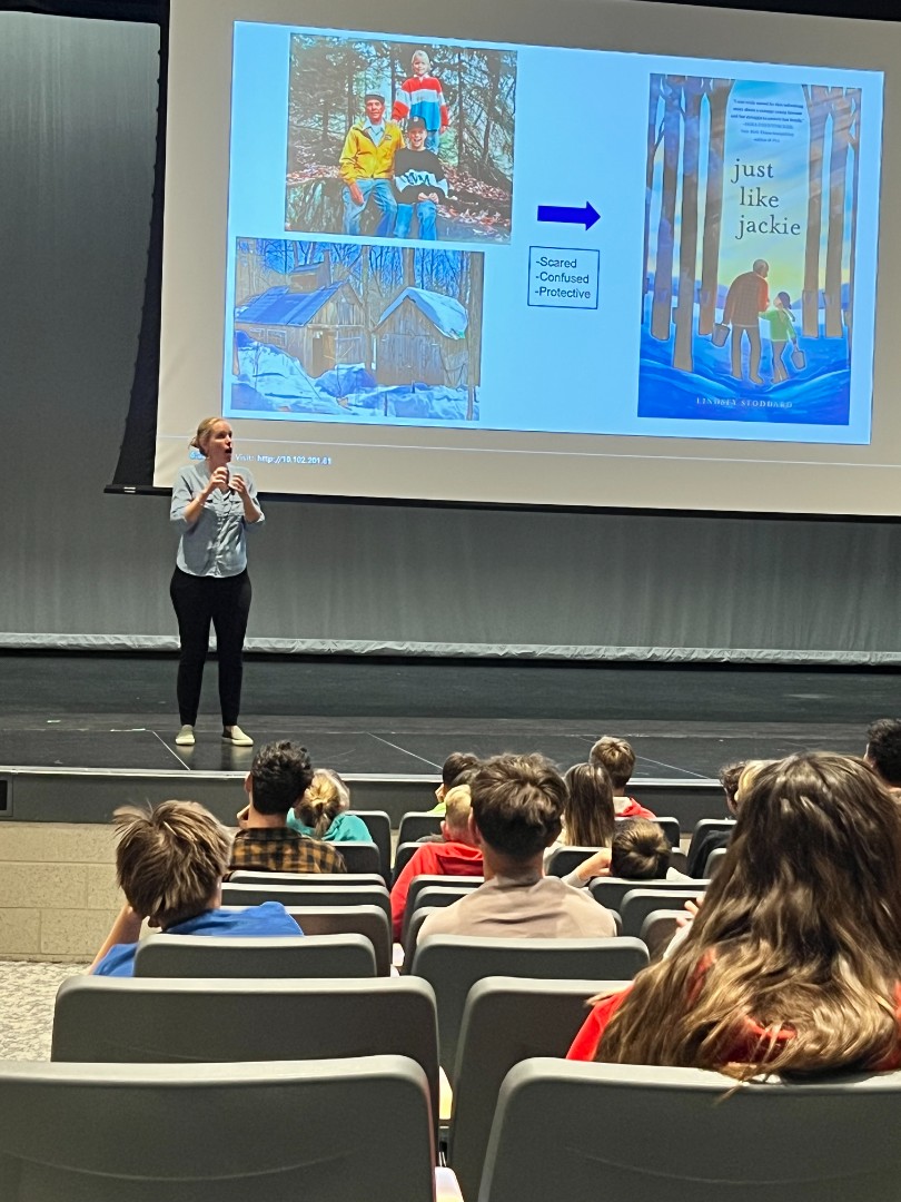 Middle School students had the opportunity to hear from acclaimed author Lindsey Stoddard. During her visit, she encouraged students to discover their own unique writing styles and shared insights into her creative process. She also introduced students to her books Just Like Jackie and Bea Is Blended, sparking thoughtful conversations about storytelling, voice, and personal expression.